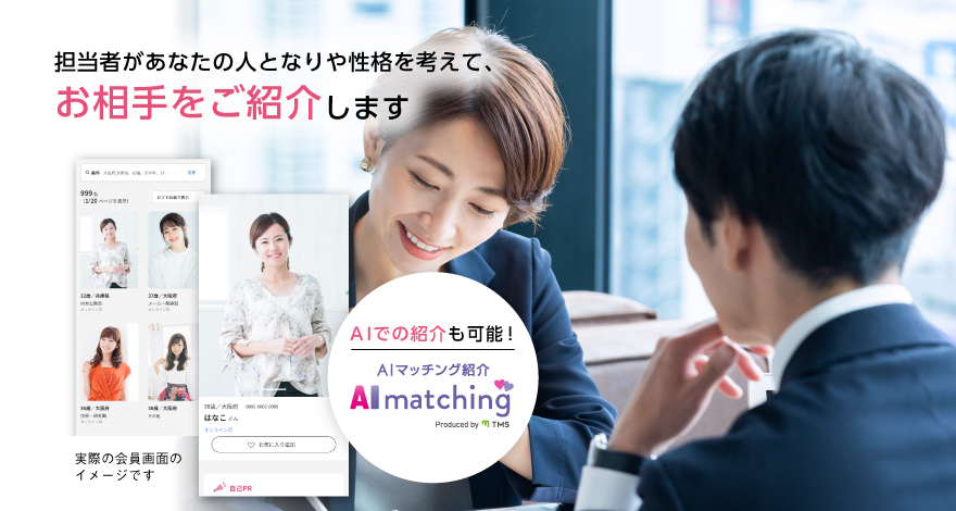 加盟相談所ネットワークは登録会員数66,000名以上※。私たち仲人があなたと相性がぴったり合いそうなお相手を推薦してご紹介いたします。